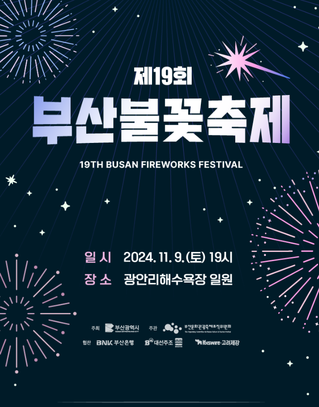 부산 불꽃 축제는 11월 4일 토요일 광안리해수욕장, 이기대, 동백섬 일원에서 진행됩니다.