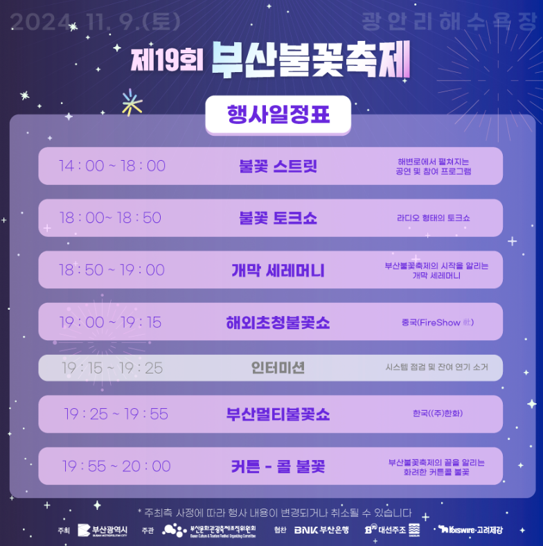 부산 불꽃 축제 세부일정 (11/4 토요일) | |